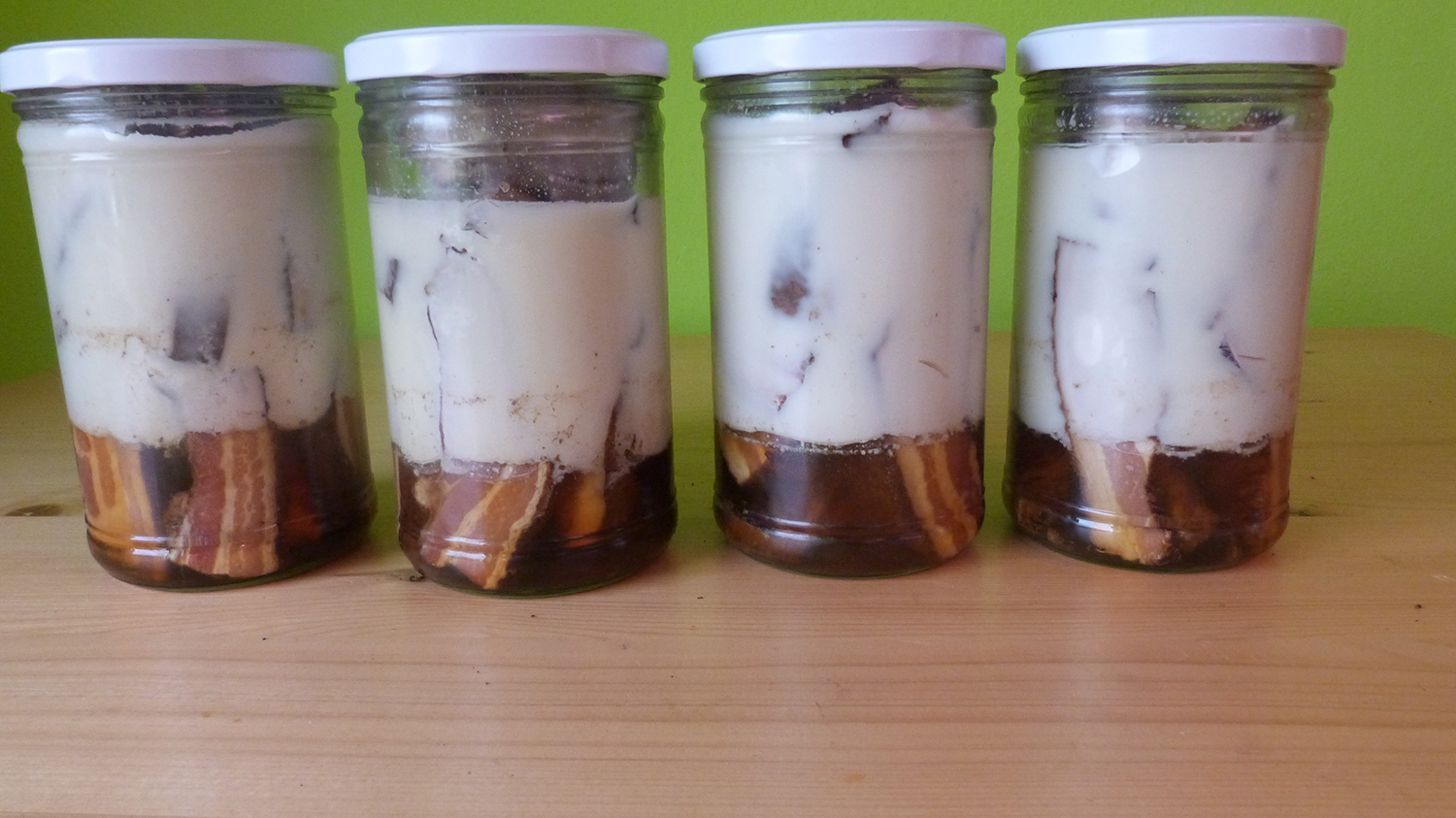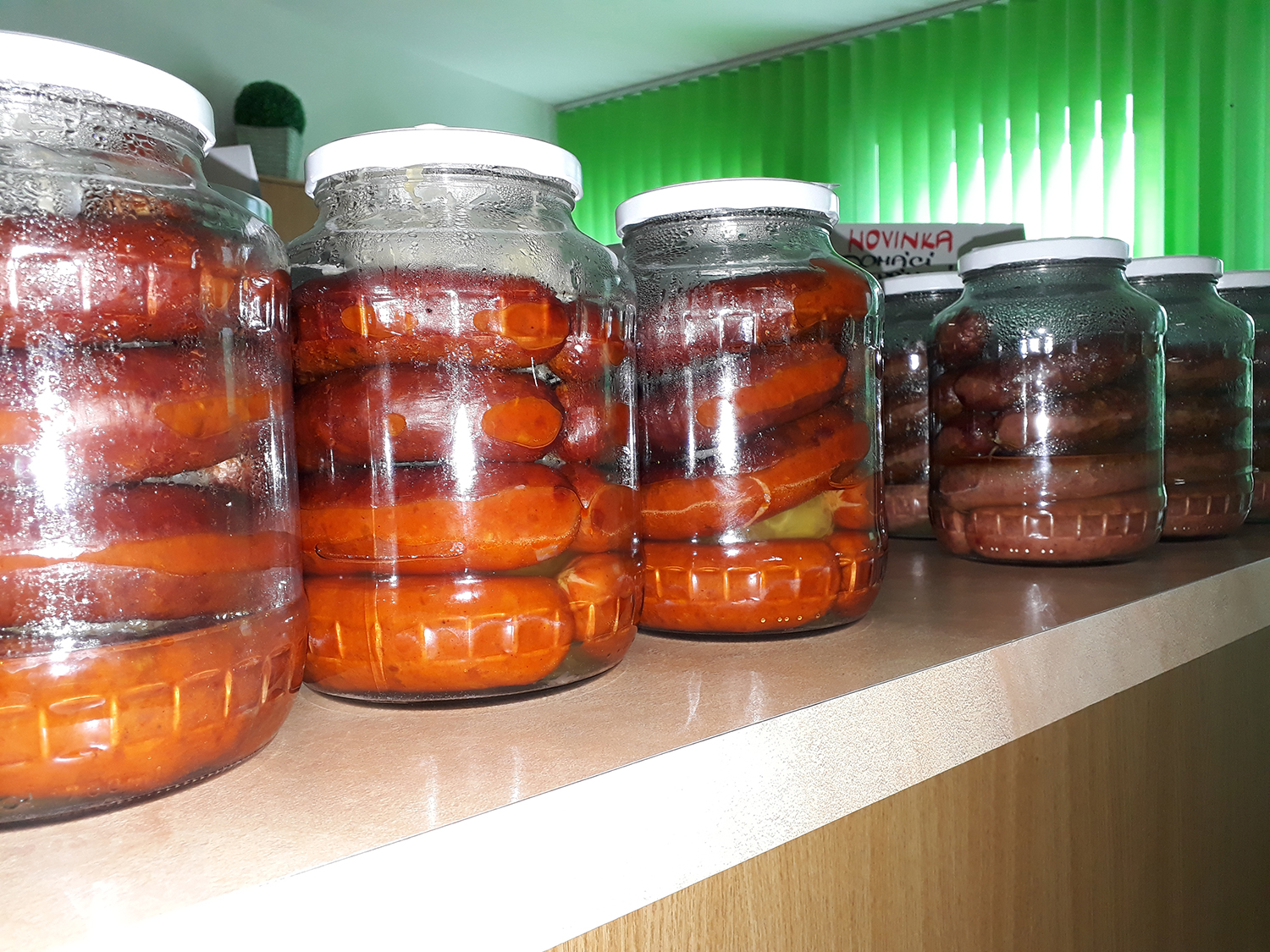 V našem uzenářství můžete zakoupit také nejrůznější delikatesy ve skle. Nabízíme utopence, zavařené boky, zavařené klobásy nebo lahodné játrové paštiky. Paštiky jsou velmi oblíbený sortiment u našich zákazníků. Vyrábíme průměrně 5 různých druhů. Neváhejte nás navštívit a ochutnat naše uzenářské delikatesy.